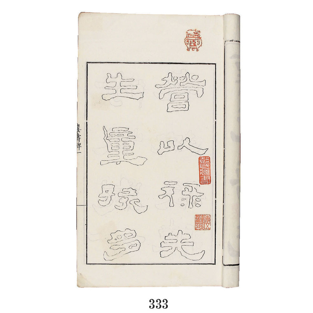 是书白纸双钩摹本,开本宽大。《履园丛话》有言:“是碑旧藏吴门蒋韵涛学博家,前阙四十八字,后有丰道生题跋,知明时与《夏承碑》同藏于吾乡华东沙氏,即真赏斋主人名夏者也。乾隆六十年,余从韵涛侄春皋明经双钩得之,以寄翁覃溪先生,曲阜桂未谷遂以刻之京邸,此顾南原作《隶辨》时所未见。”