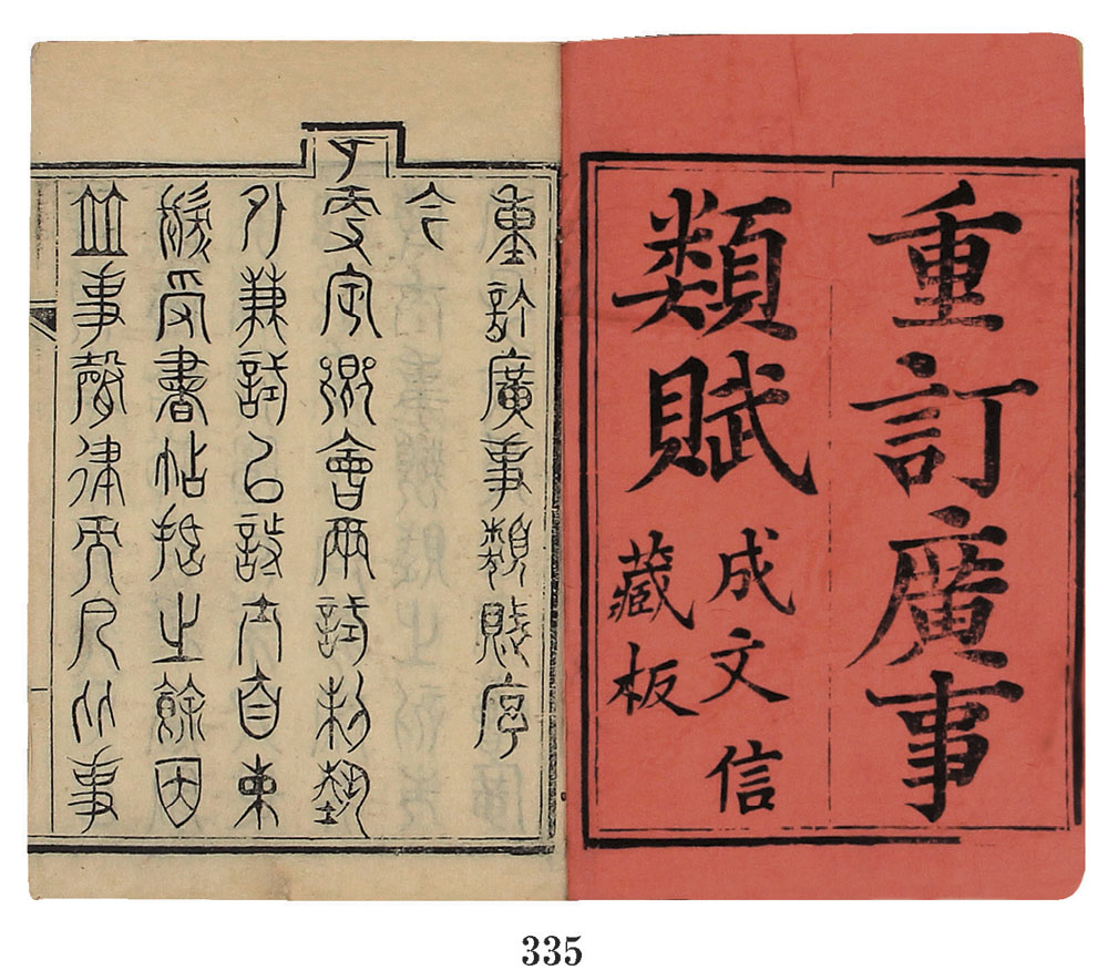 是书原函,品相极佳,字体笔画清晰,刻印精细。该书为清代知名类书,是根据宋代《事类赋》增订编撰的,其搜集历代训诂材料极多,是古代颇有影响的类书之一。