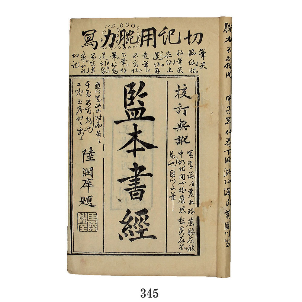 拍品包括光绪十一年(1885)刻《书经》六卷,一函四册;嘉庆二十一年(1816)刻《书经体注大全》六卷,一函四册。