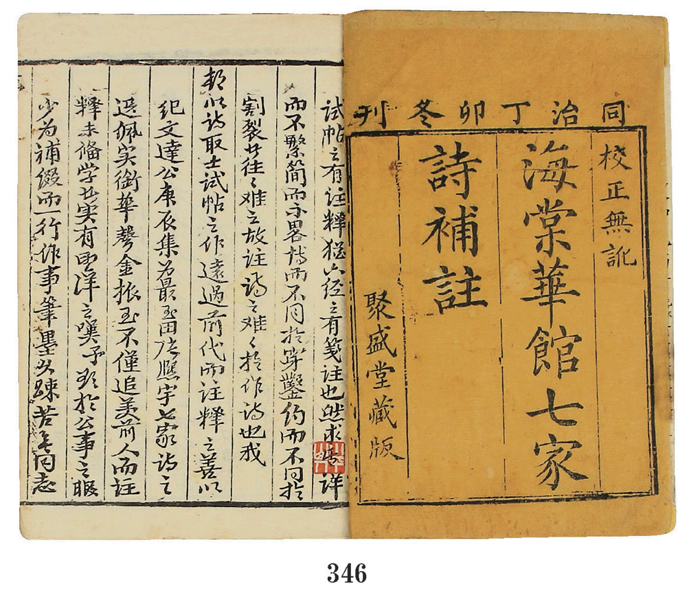 此书用白纸印行,原装原函,装为五册,品相上佳,其中包括《滔香斋诗》、《修竹斋诗》等七种,皆为清代诗集史上的名家名作,由张熙宇辑评。