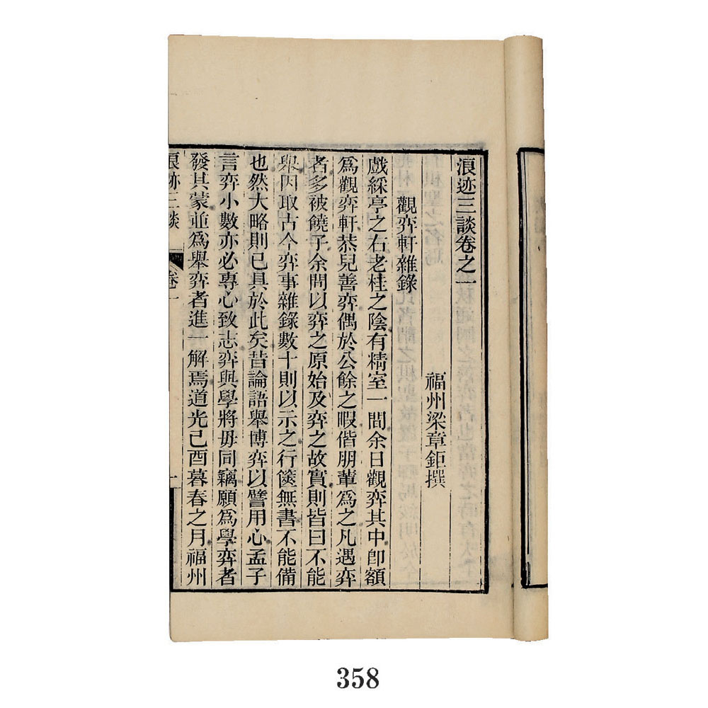 是书方字刻印精整,梁氏校刻,后板归杭县郑氏小琳琅馆,卷前有咸丰七年罗以智序。此书为清代史料笔记,与洪迈《容斋随笔》相类。