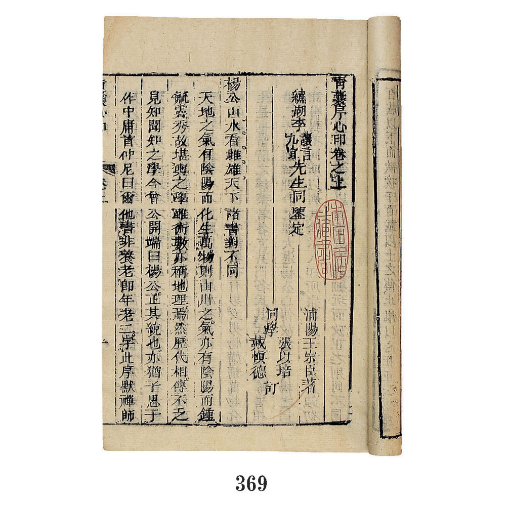 是书方字刻印,有图,卷前有康熙间张哲序,次王宗臣序,次明人刘伯温序。该书“于地理之学,曲尽奥旨,发明造化运行之机,直参赞化育之大道也”。