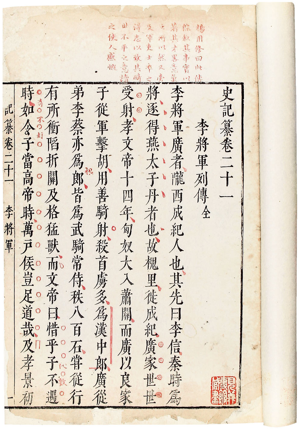 提 要: 是书刻印俱精,字体写刻优美工整,为明代吴地良工所刻。文间点划、批注并天头眉批均为朱印。凌稚隆嗜好《史记》,汇集万曆四年以前历代研究《史记》的优秀成果,撰成《史记评林》等书。其《史记纂》有三种,其一为双色套印二十四卷,拍品即为此本,存卷二十、卷二十一。