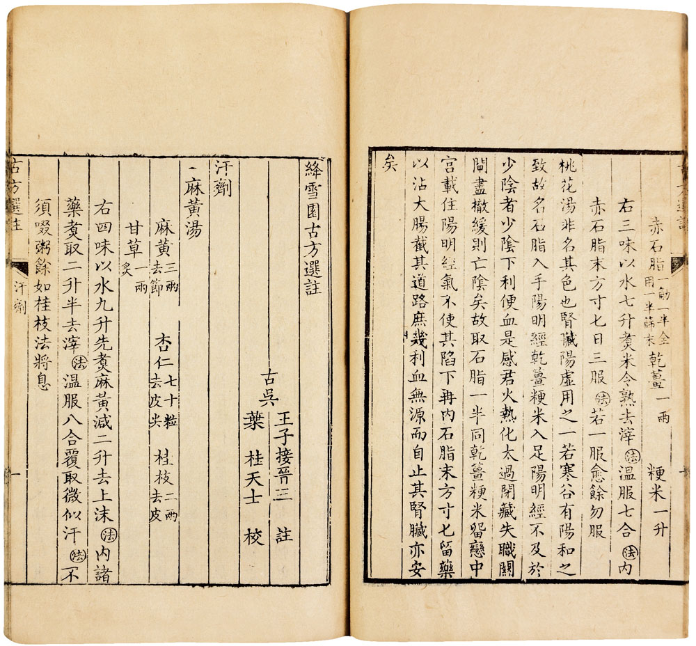 提 要: 是书写刻上板,字体软美秀气,卷前有雍正间魏荔彤序,作者自序。此书由王子接选注,其弟子叶天士、吴蒙整理,其时王氏已七十五岁。该书分三卷,上卷分为合剂、寒剂、汗剂、吐剂、下剂,对《伤寒论》大多数方剂进行了分析。中卷分为内科、女科丸方、外科、幼科、眼科、痘疹科等。全书精选历代名方,分析中肯,说理透彻,颇为实用。