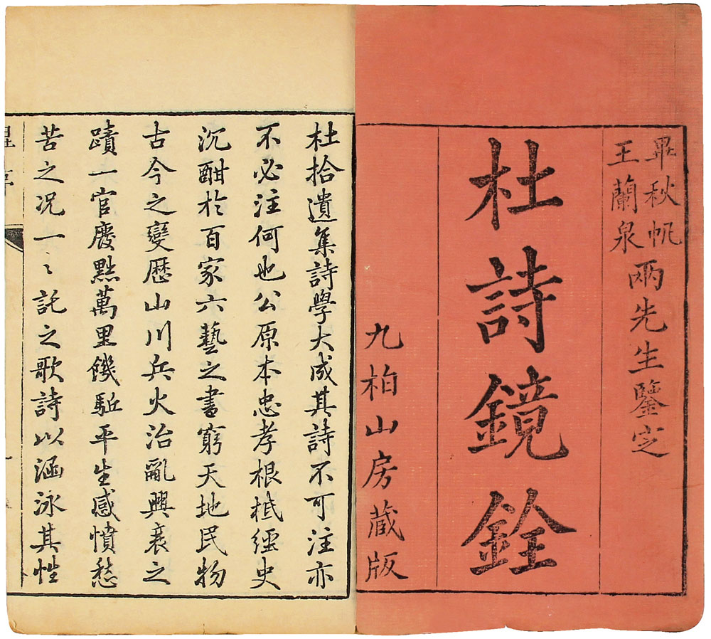 提 要: 是书老装未衬,展卷若新,品相极好。版面紧凑而有序,字形偏长,刻印精良。文中有圈点断句,天头有批语。本书为杜诗具有代表性的注本之一。正如凡例所言,本书注释“采辑众说,惟取简明,意在掇诸家之长而弃其短。”充分阐明了作品的内涵和艺术性。杨伦,字西禾,江苏阳湖人,曾官至广西荔浦县知县,晚年主讲于江汉书院,著有《九柏山房集》等。著录:《中国古籍善本总目》P1195
