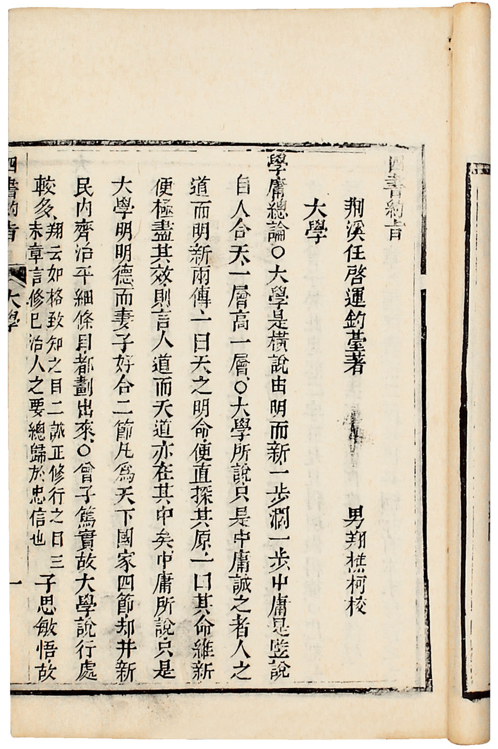 提 要: 是书老装旧函未襯,竹纸印制,天头开阔,字取方体,拙稚有趣。此书乃任启运平日与门人讲贯、随笔札记之文,大旨为科举作也。包括《论语》十卷、《孟子》七卷,及《大学》、《中庸》各一卷。任启运(1670-1744),字翼圣,江苏宜兴人,清代学者,世称钓台先生。