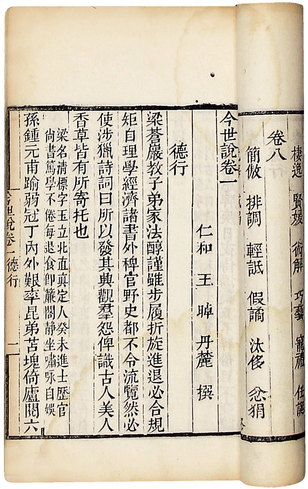 是书为白纸印本,老装未衬,品相极佳,其字刊刻极为精整,笔划斩方但又不失灵动,字体规整又不乏动势,娇小可人,可谓清中期仿宋刻本中的上乘之作。此书为仿《世说新语》之体例编辑而成,记载了大量清代文人的奇闻逸事,大可补正史之遗。本书曾于本公司2008年7月份小拍中以2万余元成交。
