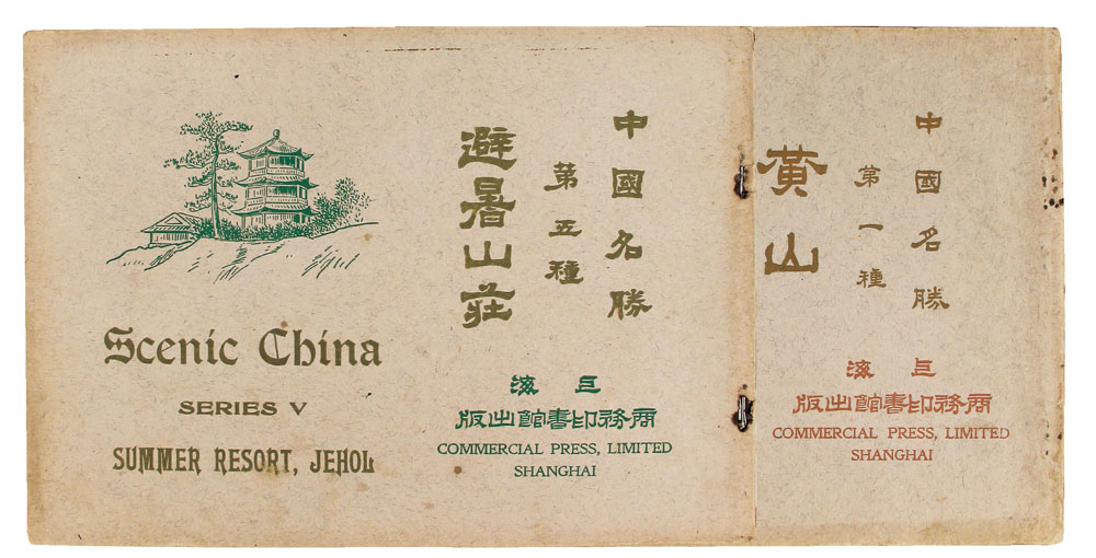 此书收中国山水名胜,图像清晰,印制精美。拍品为黄山、雁荡山、庐山、普陀山、西湖、避暑山庄、泰山、衡山、虞山、天台山、恒山、五台山、西山、盘山部分名胜。