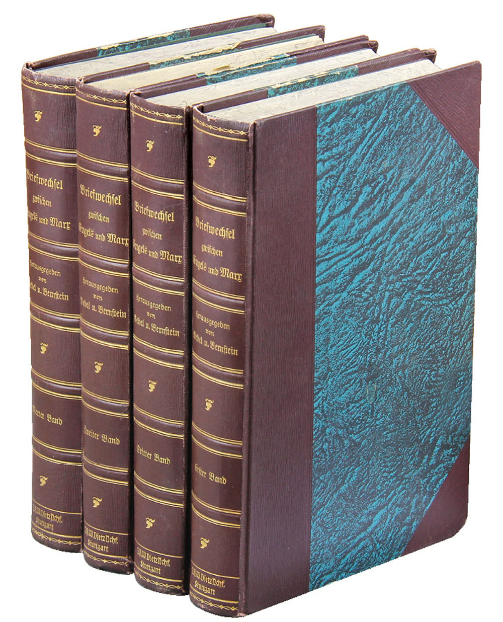 提 要: 拍品精装四册,32开本,优质木浆纸印制,书品极佳。此书由倍倍尔和伯恩施坦编辑,内收两位导师从1844至1883年写的信1386封,分四卷四册出版。这些信是其理论遗产的重要组成部分,含有这两位科学共产主义创始人生平的大量珍贵资料。