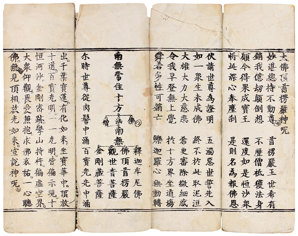 是书老装,原签亦存,白纸精印,厚达3.5厘米。全经首尾俱全,其内容包括《摩诃般若波罗密心经》、《金刚般若波罗密经》、《佛说阿弥陀经等多种佛经》,当为专门供僧人诵经之用。