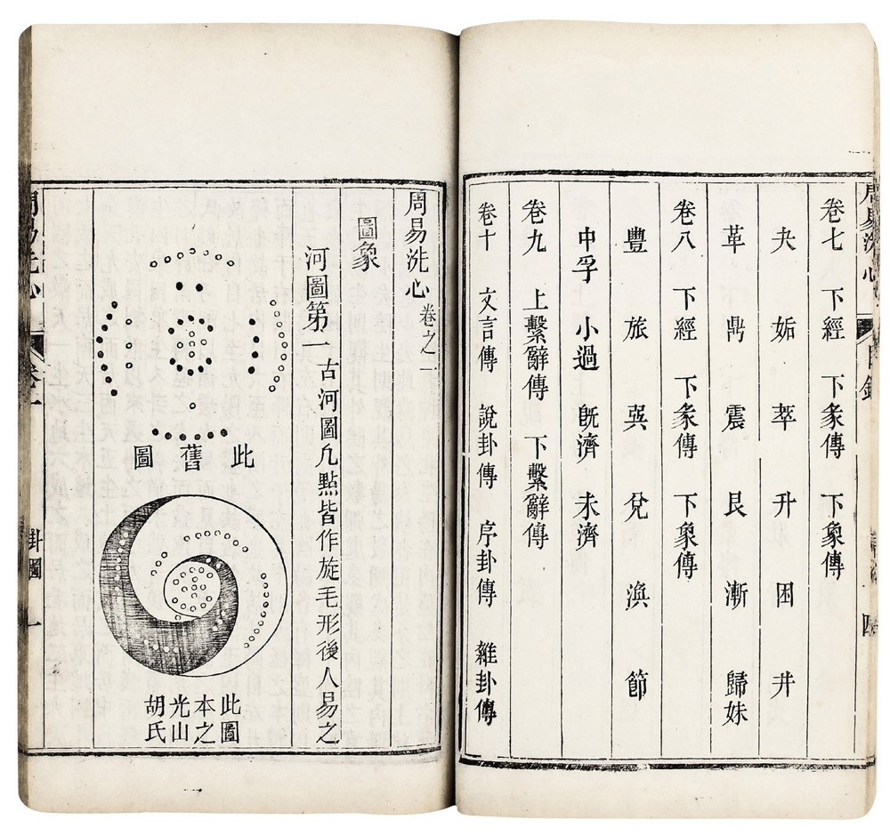是书为白纸印本,雕造精雅、有图。牌记页题“光绪八年岁次壬午春仲筱里任一本堂家塾依清芬堂原板重校镌”。《四库提要》称:“其说颇务新奇,然其诠释经义则多发前人所未发,大抵观象玩象玩辞时阐精理”。