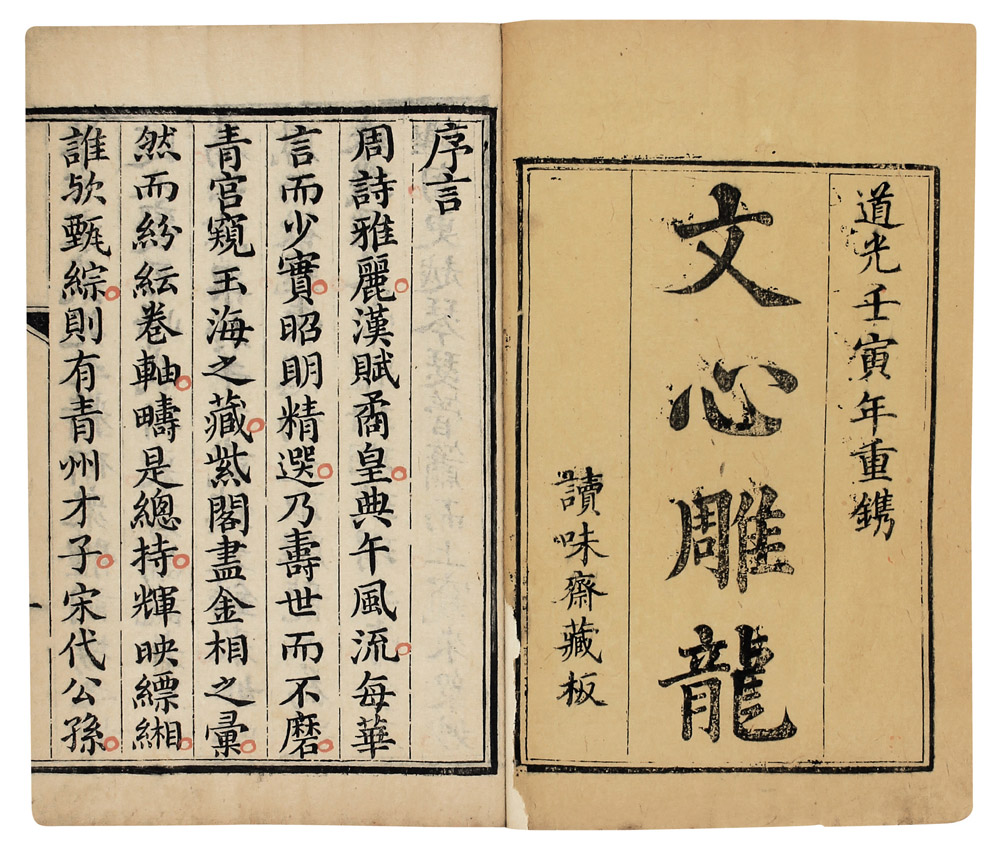 是书老装未襯,竹纸印制,字取方体,文中有朱笔圈点。此书为杨慎批点,标志着明代较为系统地研究文学理论之开端,也标志着明代借助《文心雕龙》以建构文学特别是诗学创作论的开端。