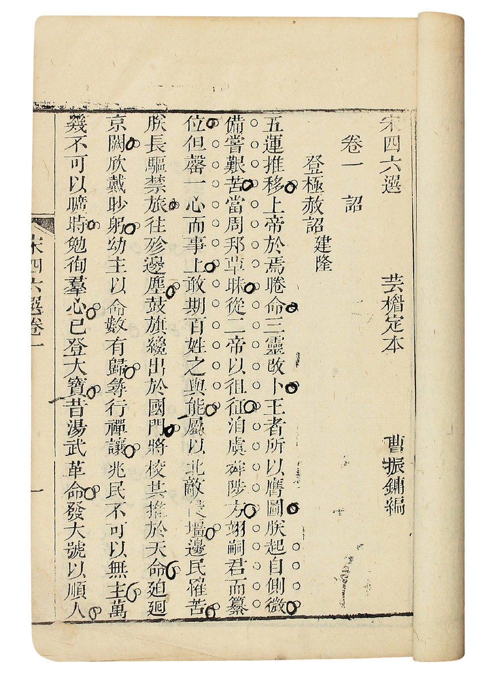 是书版面无界栏,未加衬纸,装为十二册。前有彭元瑞序,目录后有曹振镛识语,述此书由来甚为清楚。