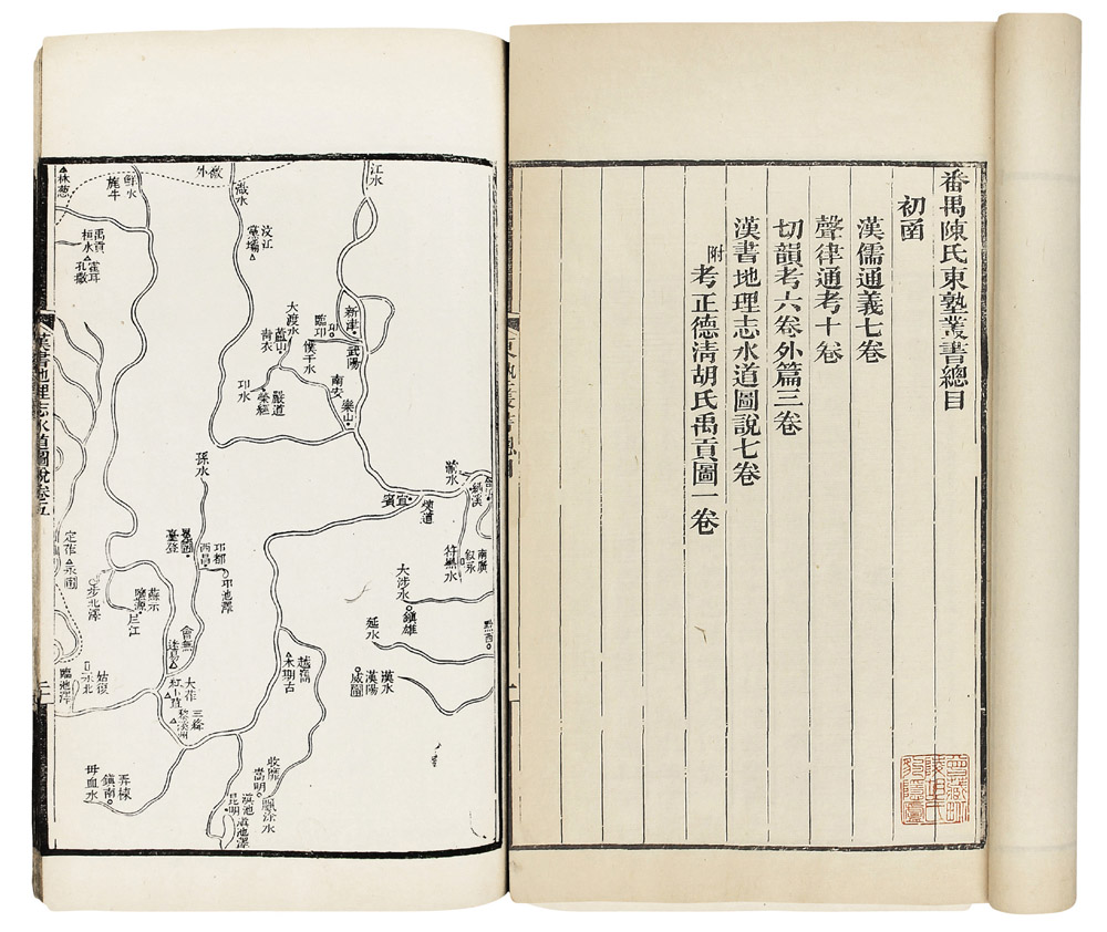 提 要: 是书包括《汉儒通义》七卷、《声律通考》十卷、《切韵考》六卷,《外篇》三卷、《汉书地理志水道图说》七卷、《考正德清胡氏禹贡图》一卷。拍品开本敞阔,行格疏朗,方体字刊刻精整。陈澧(1810-1882),字兰甫,号东塾,出生于广州,道光举人。先后受聘为学海堂学长、菊坡精舍山长。于天文、地理、乐律、算数、古文、骈文、填词、书法无不研习,著述达一百二十余种。
