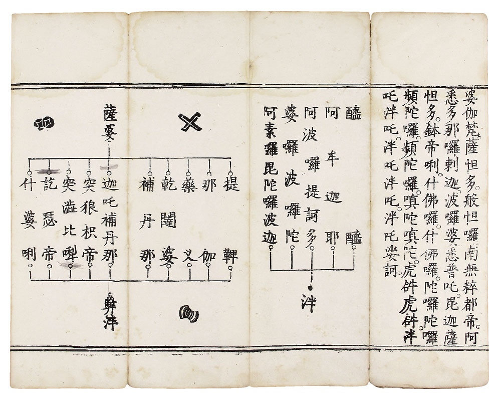 是书老装,原签亦存,白纸精印,厚达3.5厘米。全经首尾俱全,其内容包括《摩诃般若波罗密心经》、《金刚般若波罗密经》、《佛说阿弥陀经》等多种佛经,当为专门供僧人念经之用。