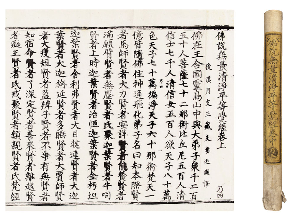 提 要: 拍品为永乐北藏,但并非常见的经折装,而是卷轴封装,这种装帧形式的佛经大多是装藏所用,并非常见的阅读之物,北藏经版常年储存在内府,故这种装藏之品很少见于民间。其原签尚存,装帧考究。观其版刻风貌,大版心,赵体大字刊刻;每版录经文五页,共二十五行,每页五行每行十七字;卷首题名下标注千字文函号及册次。《永乐北藏》自永乐十七年三月开始校勘藏经,永乐十九年开始镌刻,至正统五年刊竣。它是明初继《初刻南藏》、《永乐南藏》之后完成的第三部官版大藏经,因刊板于永乐年间迁都后的北京而得名。