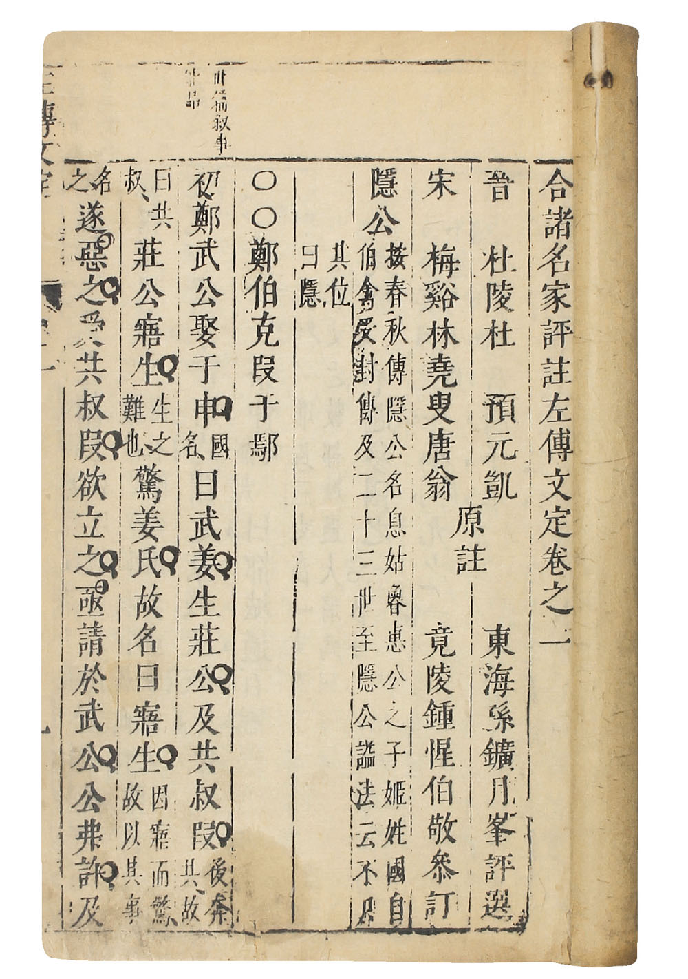 此书颇为少见,查《中国古籍善本总目》,全国仅安徽图书馆藏有一部,而查历年拍卖记录,亦未见到拍卖记录,可见其传世之稀。其老装未衬,品相上佳,将历代关于左传的评点集于一家,具有极高的文献价值。