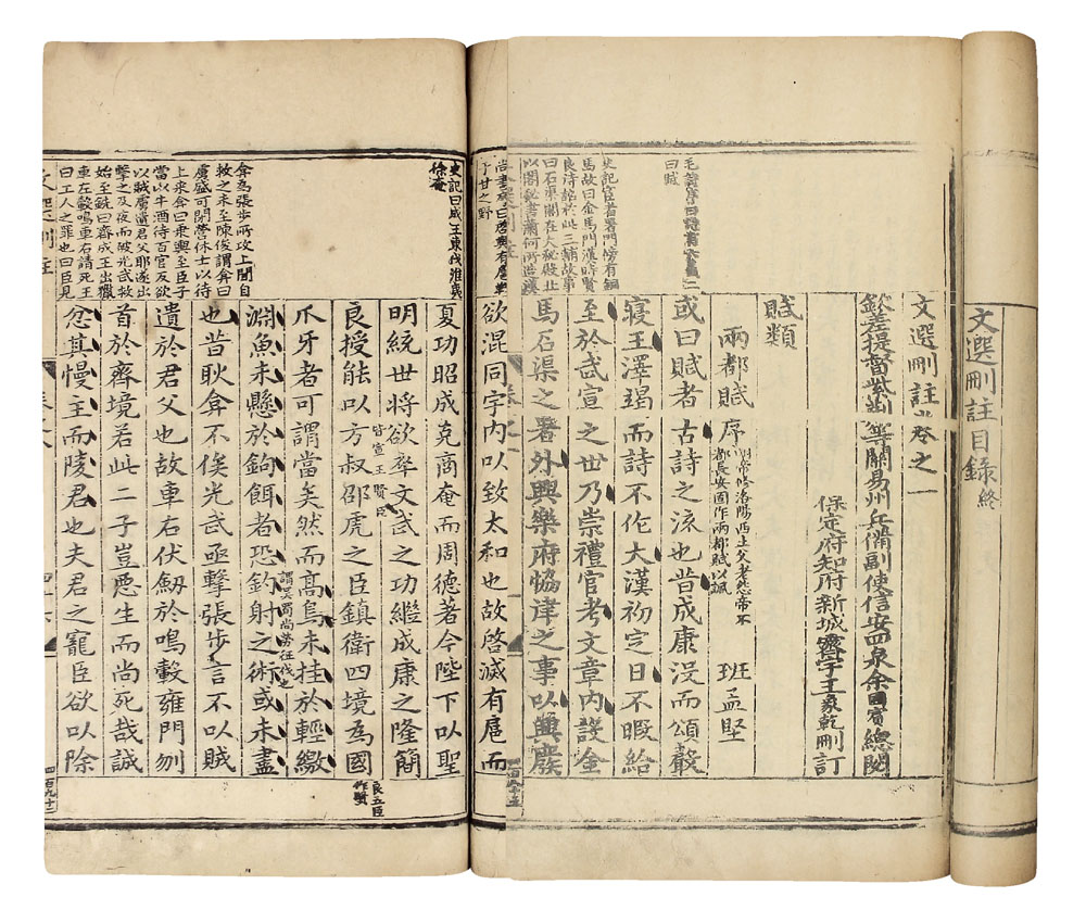 是书写刻上板,字体圆润。开本阔朗,眉栏镌评,下栏镌音释。拍品存目录、卷一、卷三、卷八。