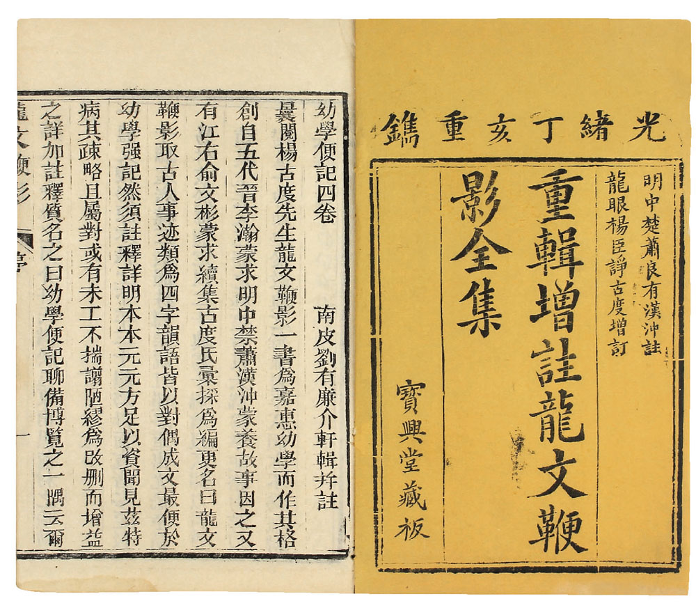 是书全文用四言成一短句,上下两句对偶,各讲一个典故。此本按韵编排,逐联押韵,是一本重要的蒙学读物。在传统蒙学中起着承前启后、由浅入深的作用。