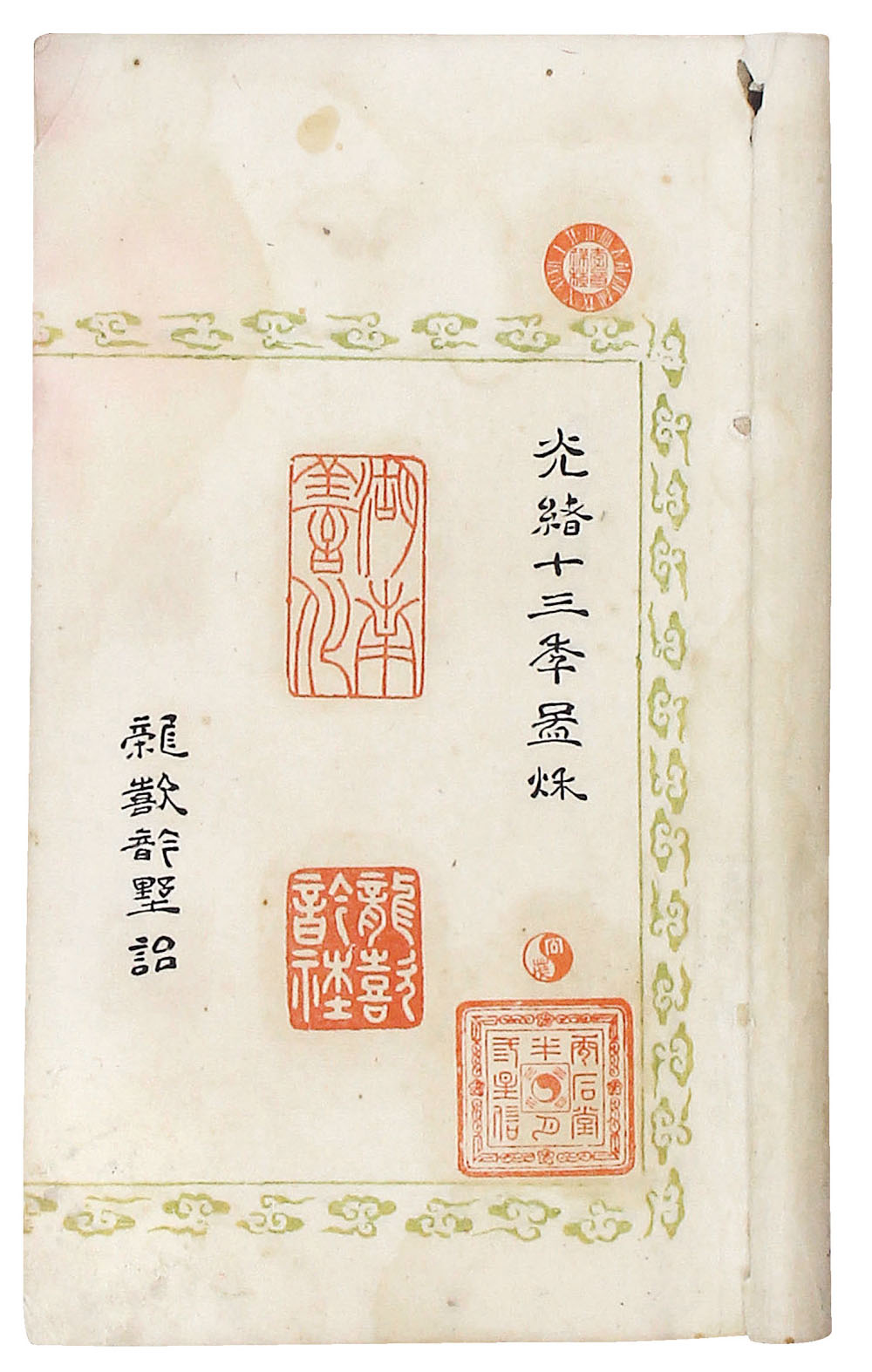 提 要: 此为黄氏自篆自钤之本,当是黄氏自留的印稿。黄膺,字鹿泉,光绪年间诗人,曾在户部任职,光绪年间,黄氏在北京宣武门东街善化(今长沙)会馆,成立“龙喜诗社”。当时徐世昌、顾璜等人皆是该社社员,后其出版《龙喜诗社东寻诗集》,在北京诗坛极富盛名。此为黄氏自制印谱,其中姓名章包括为清末知名藏书家、书法家徐才铭,早期银行家,上海银行创办人之一的杨道(字寿彤)等人。
