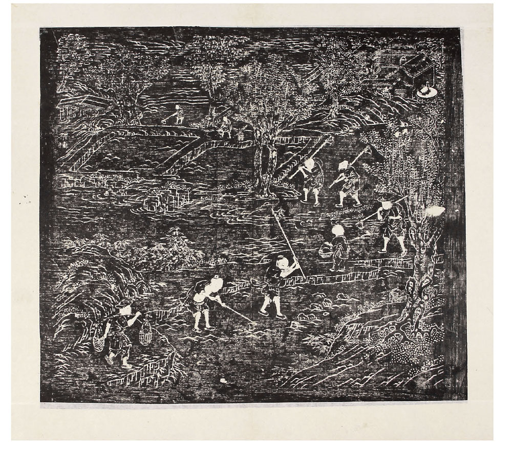 此本共收图十六幅,分布种、灌溉等,描绘了从种棉到成衣的全部生产过程,有较高的科技史料和艺术价值。后来清乾隆帝将其刻石收藏。