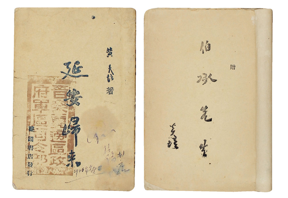 拍品有《延安归来》三种,1946年年东北书店印行、建国书店发行、韬奋书店发行(纸捻装、毛边本);《延安报告》,日昭和二十一年时事通讯社发行。
