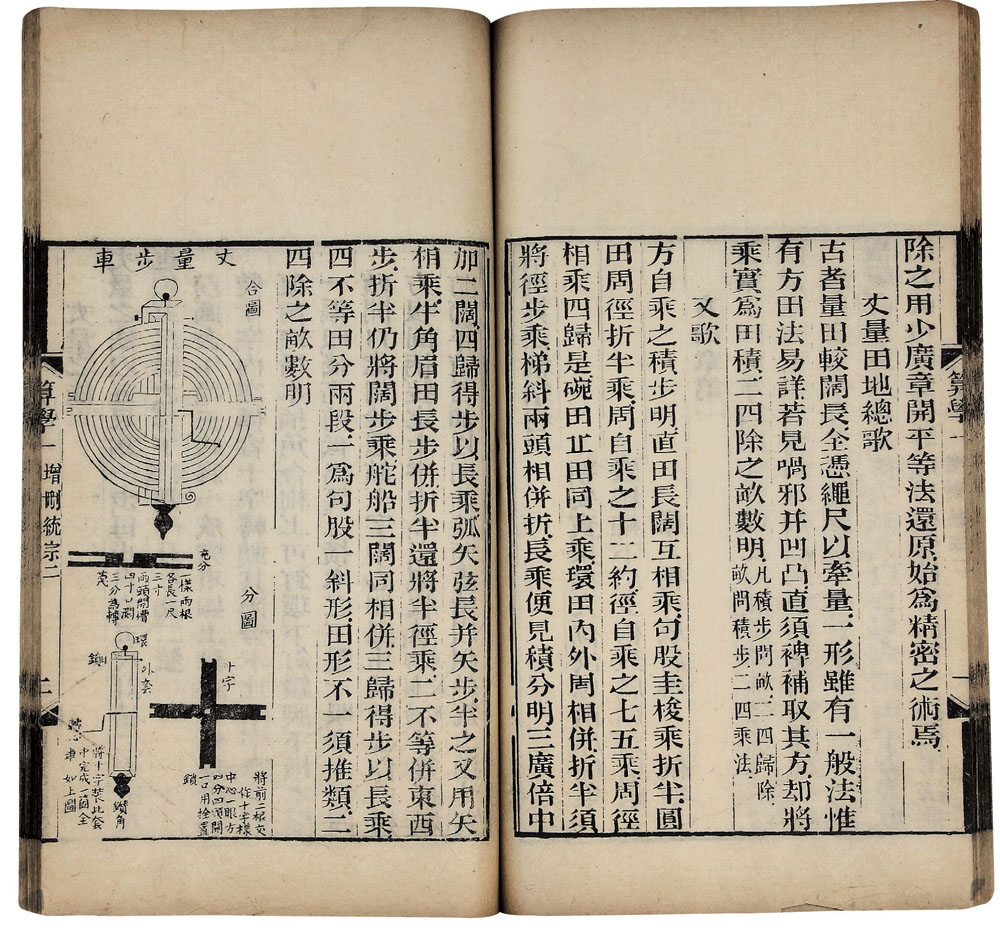 提 要: 是书老装旧函,竹纸未衬,字体扁方,品相颇佳。函套有名“秀臣”者民国甲戍年题签,每册书均钤有“知足斋主人藏”等朱印。文中间有朱笔圈点,略有批注,墨笔写于纸上。此书为珠算发明者程大位著作,为算学之集大成者。梅穀成为清代数学家,他以珠算简妙,于1757年悉心修订《算法统宗》,去粗存精,编成《增删算法统宗》一书。