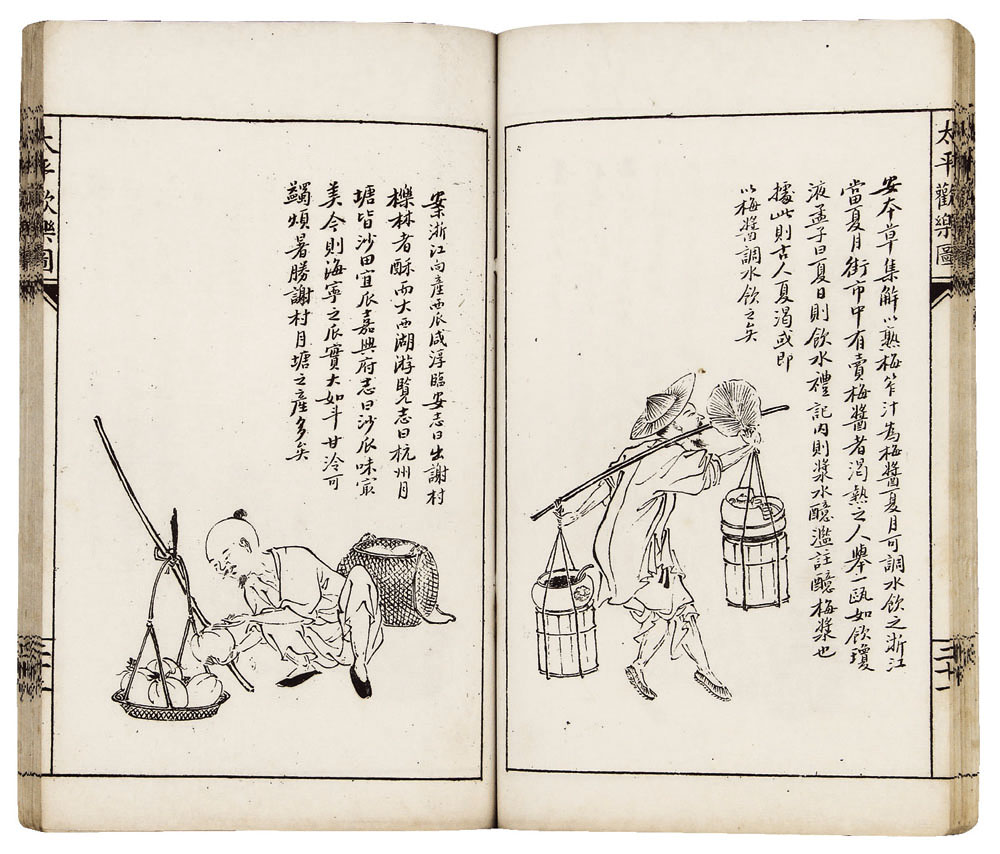 提 要: 拍品为清末民国间石印本四种,线装为七册,包括:清方兴绘有《太平欢乐图》一册,为杭嘉湖地区风俗画集,凡百页,多附以说,经金德舆进呈内廷,因得乾隆褒奖而名扬。此册副本后由潘振镛所得,并在次年付之石印。另有光绪三十一年峨眉教育部石印本《应用徙薪植物义》,书口题“植物讲义”;民国间石印《马骀画宝》三册,存《中外百兽画谱》、《鱼虫瓜果画谱》二部分;石印《时事报》,为宣统二年十二月初七至二十五日石印,订为一册,内容有续登蒋景缄译之侠情小说《绘图盗窟花》,并《图画新闻》、《彤管清芬录.海外奇谈》三部分,以图画形式讲叙故事、新闻,及民俗等。