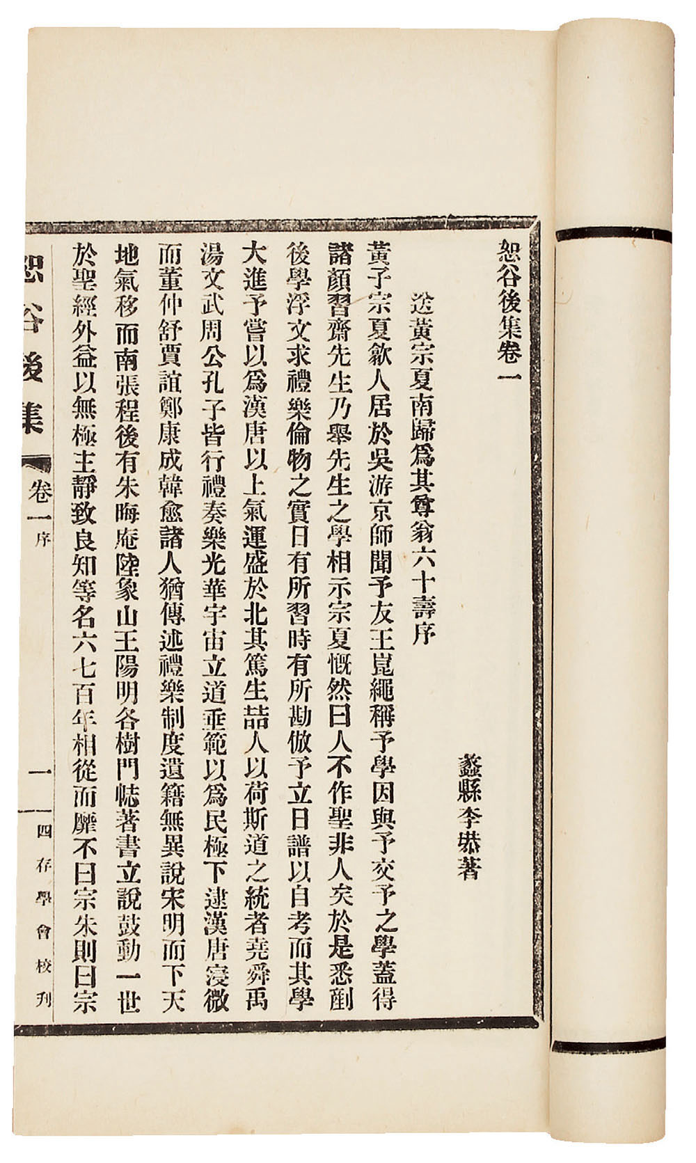此书为清初思想家李塨的著作集,由徐世昌主办的四存学会校刊出版。内收《恕谷后集》、《恕谷诗集》、《拟太平策》、《瘳忘编》、《平乙古文》、《学乐录》、《竟山乐录》等。