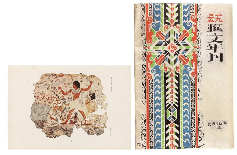 拍品均为16开本,包括《汇文年刊》二期,其一是民国二十四年出版,精装一册,另一期则为平装。汇文学校是北京最早的近代学校之一,由美国基督教美以美会于北京崇文门内创办。另有日昭和三年平凡社出版之《世界美术全集》,拍品为第一卷装饰本,精装一册。