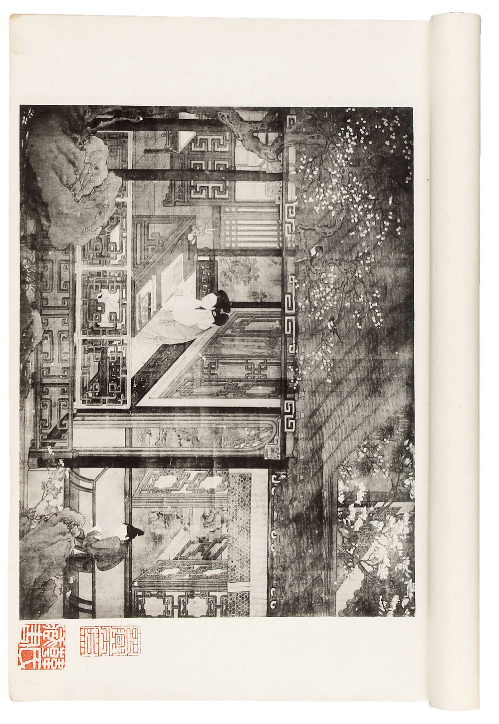 是书开本极为阔大,内收清内府旧藏美人图八福,由艺苑真赏社以珂罗版形印行,印制精美。