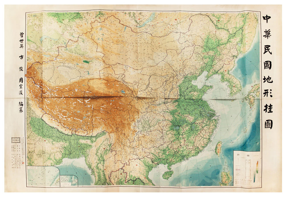 提 要: 此为民国时期出版的全国彩色地形挂图,是建国前夕权威性最高的全国地形挂图新版本,中国地形图编纂会承制,左侧上写“曾世英、方俊、周宗浚编纂”。此三位作者都是我国20世纪地图制图界的权威人士。拍品为我国20世纪40年代建国前的地图,对研究我国疆域和政区历史变迁,具有实物资料价值。