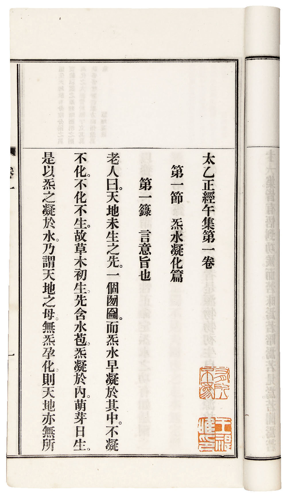 是书二截楼本,白纸精印,后有济南道院诸资刊人题名,文中图用朱红套印,甚为漂亮。