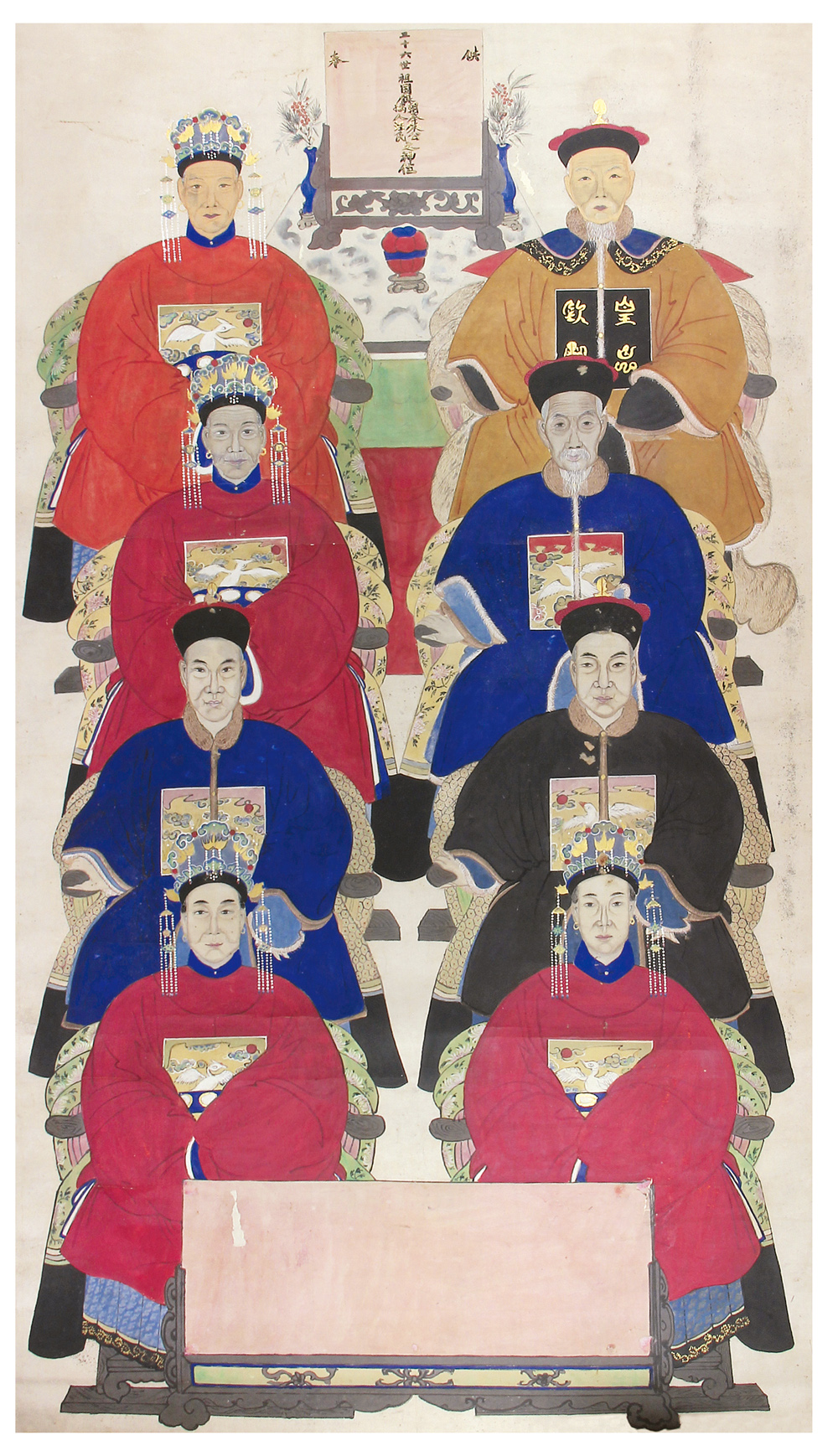 此为朱氏三十六世祖朱国镇及其家人画像,绘制精美,开本极大,品相佳。