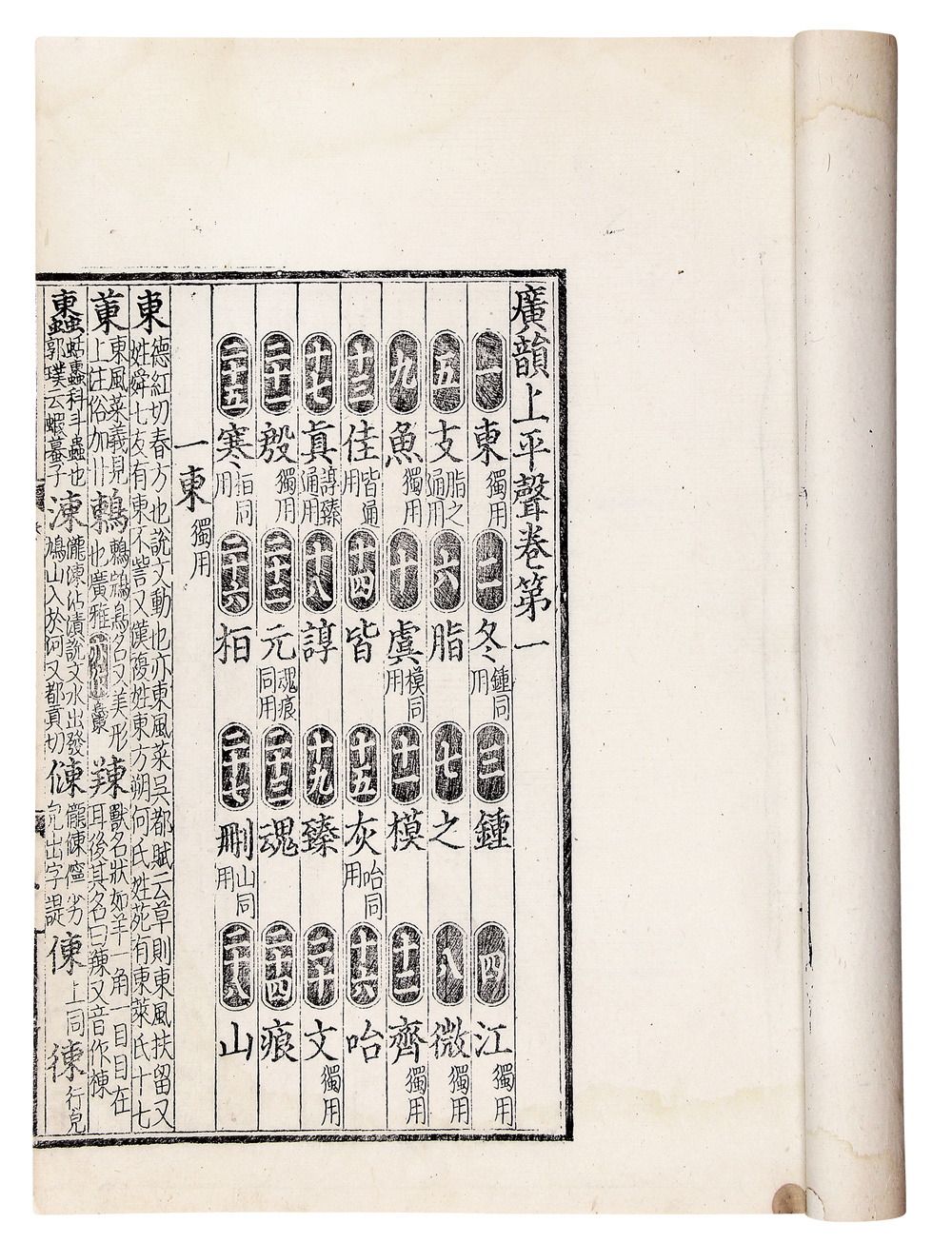此书为光绪时著名外交家黎庶昌所刻《古逸丛书》本之一,以元代泰定本《广韵》为底本,请日知名刻工木邨嘉平摹刻而成。开本阔大,字体俊秀,纸墨湛然。元代泰定本《广韵》今已极为难见,此本可传其风神。