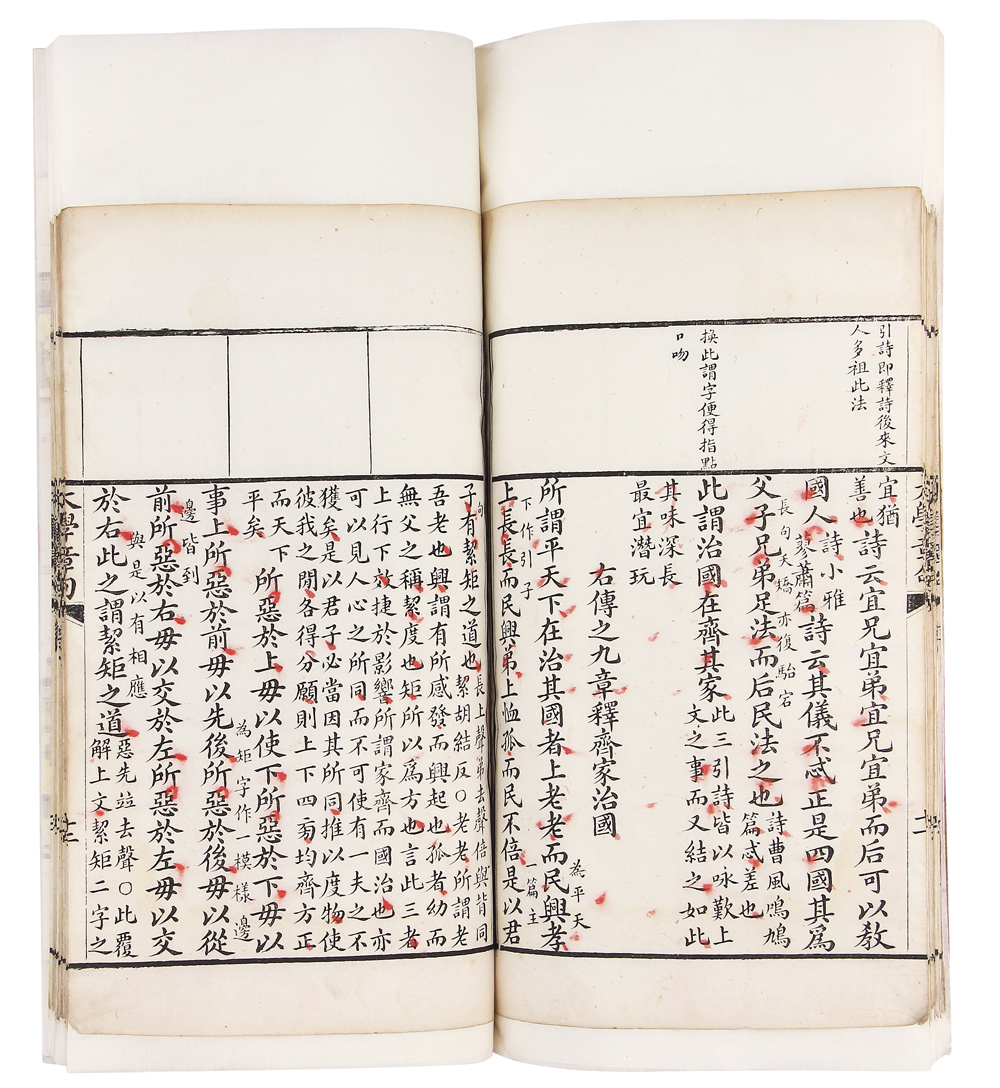 此书用白纸印制,文字皆用行楷书手写上版,笔划舒展,镌刻精整,叹其不愧为私人家塾刻本,与寻常坊刻本《四书》颇为不同。广西偏居西南,苦寒之地,若此写刻本,并不多见。