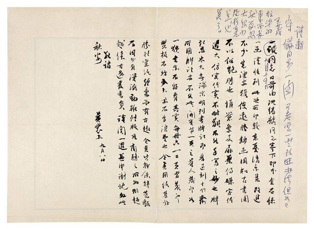 此为黄裳致“李一氓”信札,内容为讨论金石版本学方面的著述。黄裳,原名容鼎昌,回族,当代散文家、高级记者、当代著名藏书家。著作有《旧戏新谈》、《黄裳书话》等。