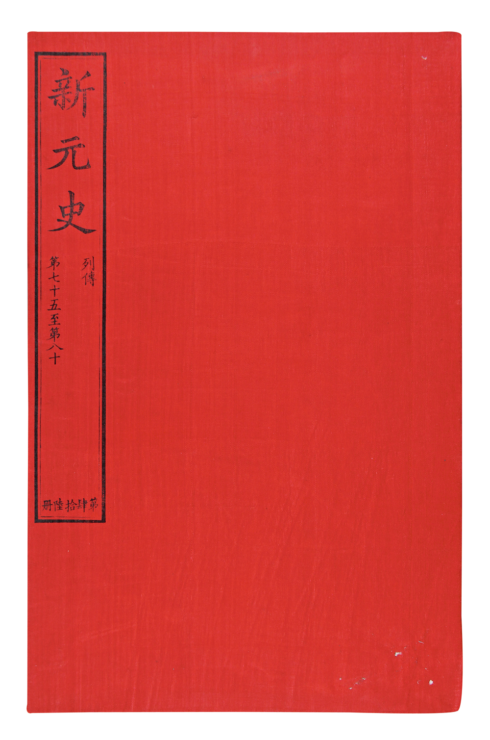 提 要: 是书开本极为阔大,为白纸精印本,字体端正,墨色光黑,版式疏阔,品相上佳。其装帧系包背装,以清内府红色贡绫做书衣,与内府《四库全书》中史部为红色书衣相一致,庄重华丽。此书是不满《元史》而重作,采用了一些西方的撰述和新史料,徐世昌总统曾命令把它定为“正史”。拍品为第四十六册,存《列传》第七十五至八十卷。