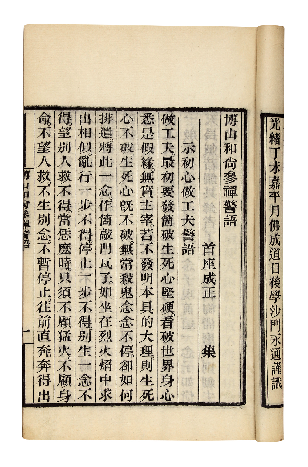 是书辑《寿昌和尚普说》与《博山和尚参禅警语》于一编,刻印精致。