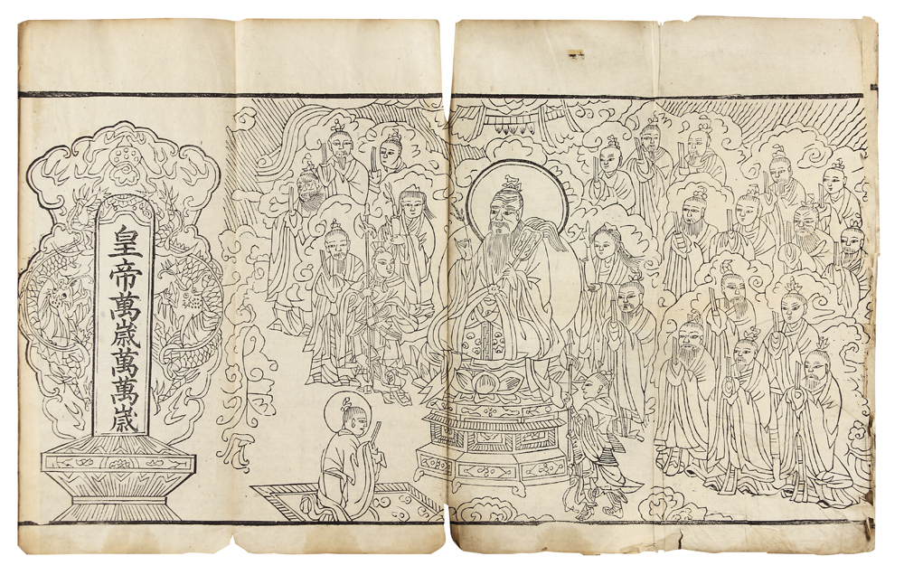 是书为折装,写刻上板,卷前和卷后有版画。此为道教经典,流传甚广。