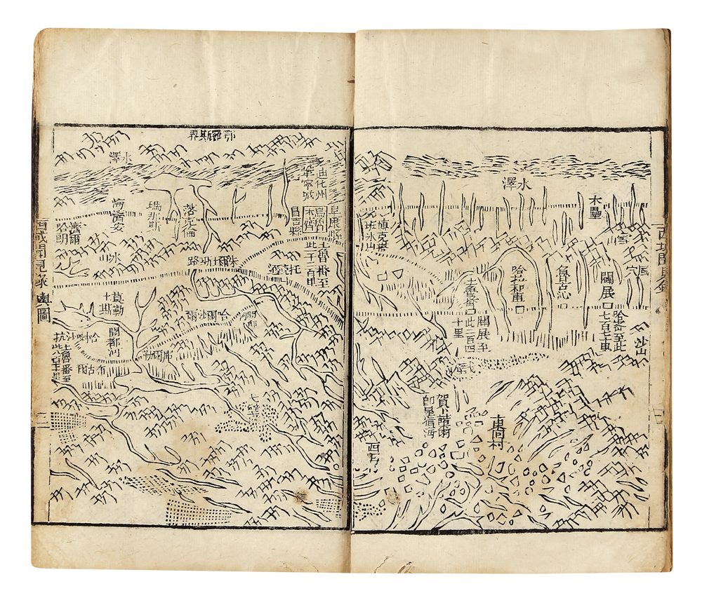 是书为白纸印本,开本小,二册合订为一厚册,方字刻印精致,卷首有图。此书详细记录了当时西域的人文地理、风土人情、物产习俗,是难得的史料笔记,