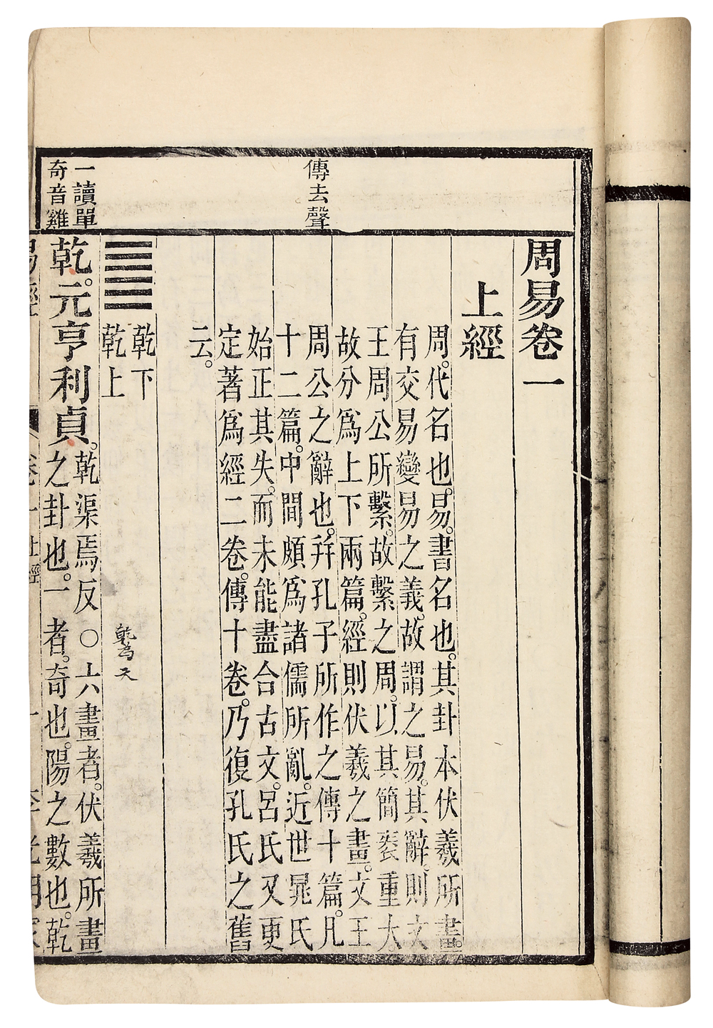 此书为竹纸刻本,字大有少量硃批,品相完好。包括《易经》三卷、《书经》一卷。《易经》为群经之首,设教之书,是古代汉民族思想、智慧的结晶,被誉为“大道之源”。