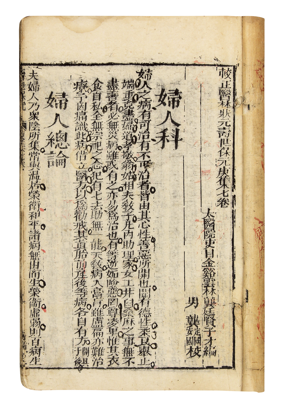 拍品老装未衬,字形方整。卷目下方有“广顺堂”、“广顺堂藏版”字样。此书为明内府御医龚廷贤所著之综合性医术,全书十卷,按天干编次,约成书于17世纪初期。