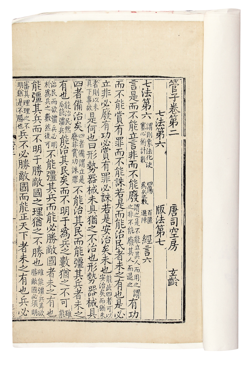 拍品为光绪间影宋刻本《管子》存前六卷;明末刻本《管子》存卷十三至卷十八,共六卷。
