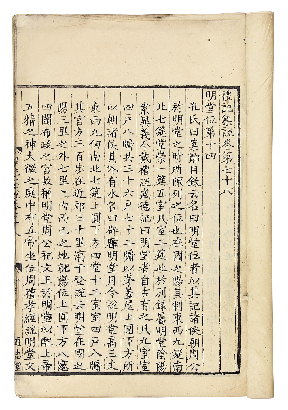 是书写刻上板,版心下镌“通志堂”,存卷十八、十九、五十二、五十三、六十八、六十九、七十八、七十九。