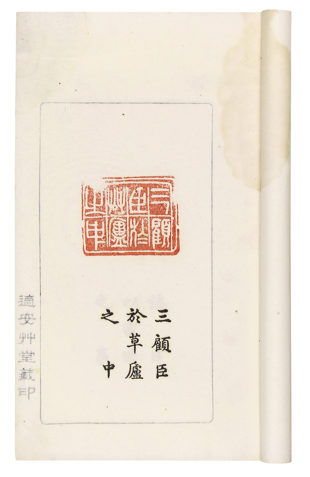 是书白纸印製,两色套印,品相佳,版心下印“适安草堂藏印”,印章清晰,并附简体字印文。“适安草堂”为陈錬室名,陈錬,乾隆间人,篆刻名家。《中国美术家人名大辞典》有其小传。