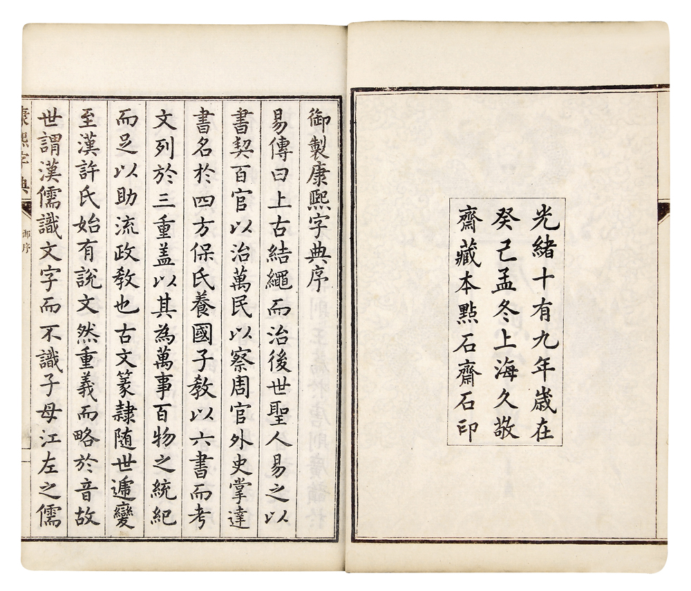 是书为白纸印本,原装原函原签,是我国第一部以字典命名的汉字辞,以天干顺序编册,后有补遗。