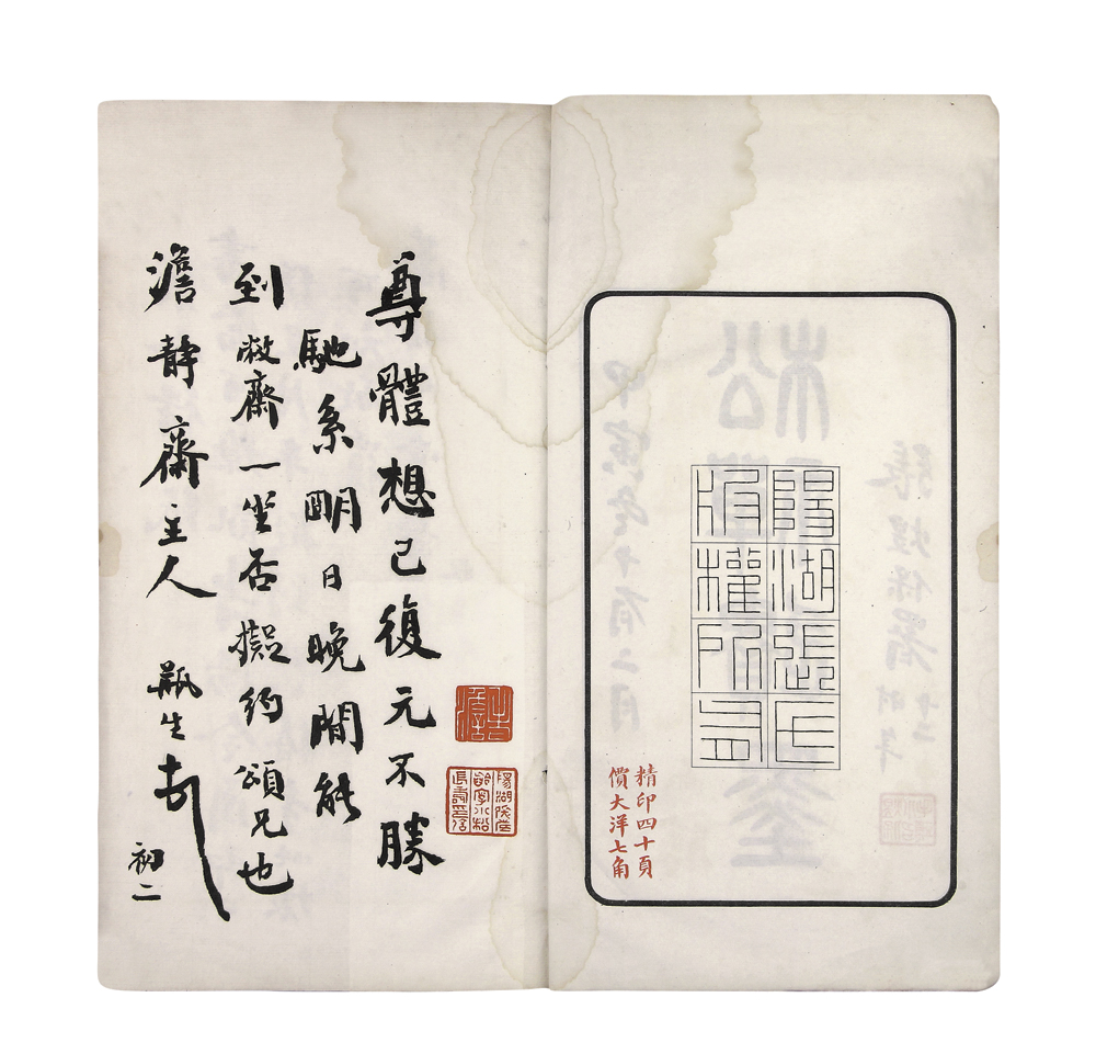 此拍品为翁同龢书法,白纸印製,开本大,印製清晰。此书版权页下印有“精印四十页,价大洋七角”。