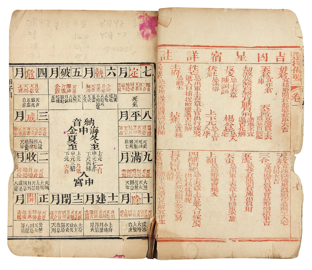 拍品老装未衬,字取方体,刻印精整,硃墨套印,为较初印之本。此书胪六十甲子年月日时之休咎,复以生命宜忌分系之,尤便于用。