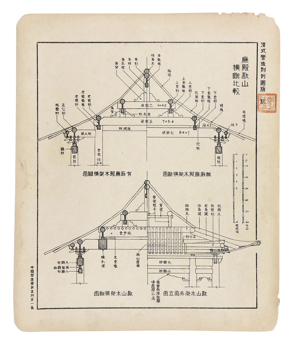 拍品为梁思成著《清式营造则例》图版部分,散页装。《清式营造则例》为梁思成研究中国清代建筑的专著,1934年由中国营造学社出版。